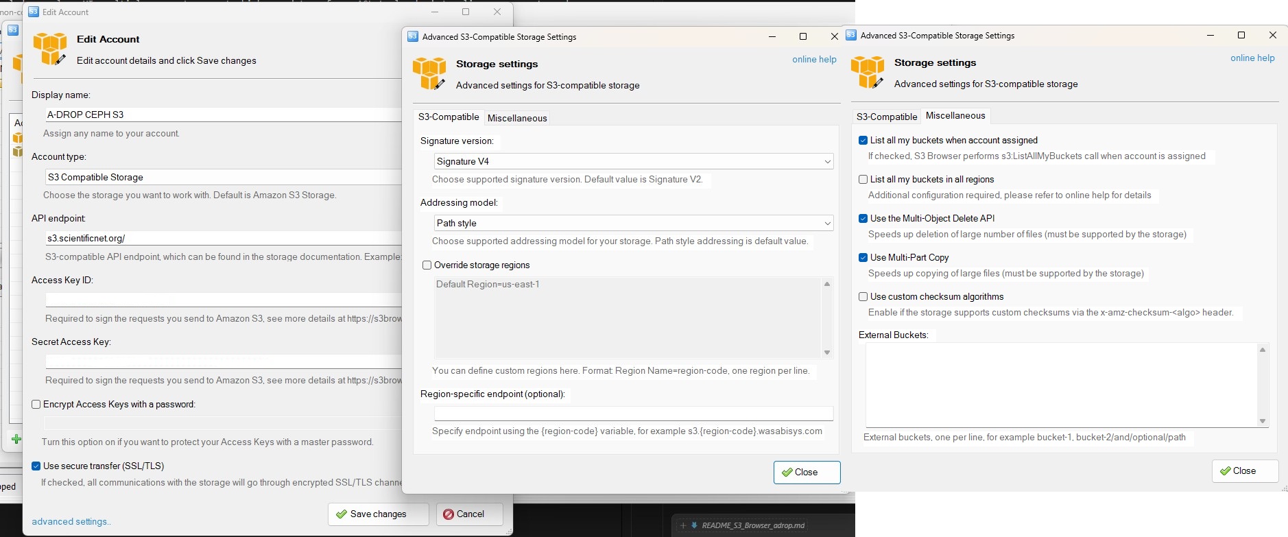 Using S3 Browser v13.1.1 to Access the CEPH S3 A-DROP Bucket¶